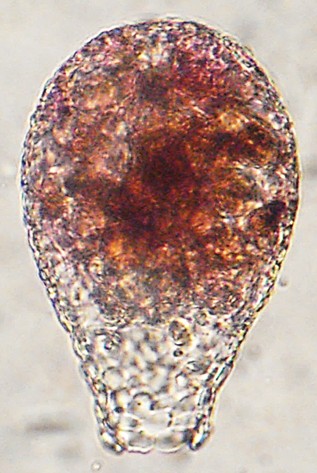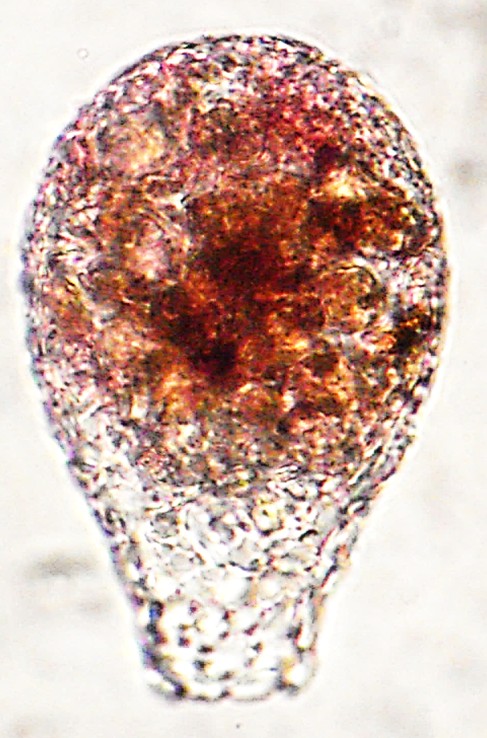 A. scotica – Exemplares do Parque Nacional das Sempre-Vivas/MG (o corante Rosa de Bengala foi utilizado para corar a ameba no interior da concha) e da zona rural de Riachão/MA.