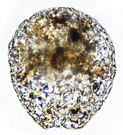 Dimensões e Média (em µm):Comprimento = 85-141 (116,5); Largura=79-128(97); PS=27-47 (34,5). As medidas (N=15) e as razões: C/L = 1,1-1,3 (1,2) e L/PS = 2,3-3,4(2,9) não coincidiram com as espécies já publicadas.