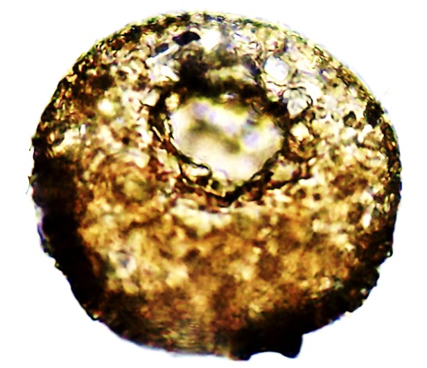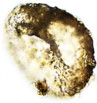 Dimensões e Média (em µm): Diâmetro = 79-94 – 100×106 (91×100); Altura = 45-52 (49); PS=17×27 – 20×35 (18×30). Algumas das medidas (n=12) ficaram inferiores e as Razões D/A = 1,9-2,4 (2,1) coincidiram às do autor.