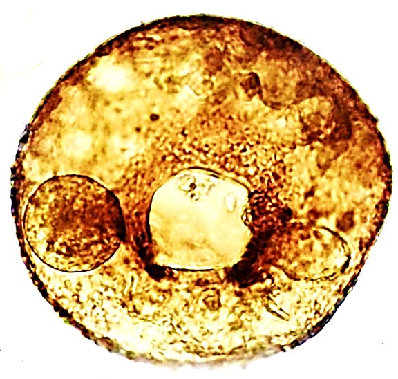 Aspectos da Teca: Circular ou ligeiramente oviforme, abaulada no fundo e comprimida próximo ao PS em vista lateral. Revestimento quitinoso, de aspecto liso (amarelada) transparente, contorno regular, às vezes com material aderido. Abertura circular ou oval, invaginada, com fino lábio. Em vista lateral observa-se projeções da abertura que formam um tubo até a superfície anterior.