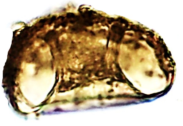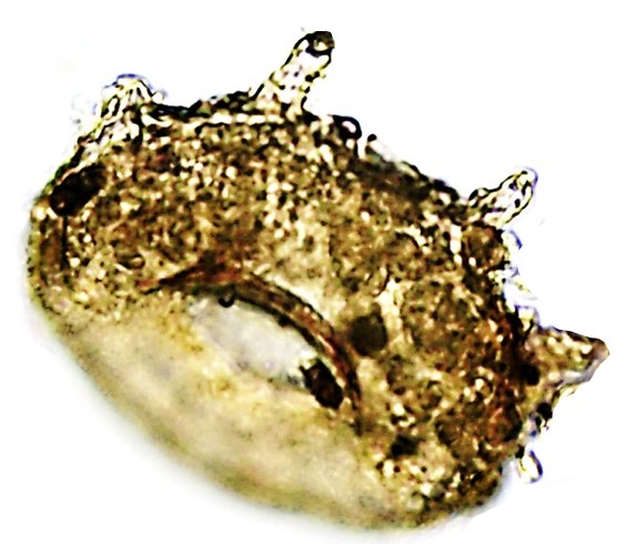 Aspectos da Teca: Contorno circular ou ovalada em vista oral, com pequenos espinhos em número variado ou ausentes, distribuídos na região dorsal da concha, somente alguns na borda. Em vista lateral o formato é “triangular” afinando em direção à Abertura e abaulada no fundo. Nessa posição observa-se expansões internas – freios ou pontes – em número de 3 ou 4, que se aderem na parte superior da teca. Revestimento quitinoso ou com pequenas partículas aderidas, com aspecto amarelado amarronzado. Abertura circular ou irregular, podendo ser central ou deslocada, e com 3-4 “sombras” equidistantes que são os “freios ou pontes” que se originam do PS.