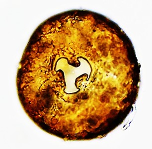 Dimensões e Média (em µm): Diâmetro=101-148 (121); Altura=50-87 (68); PS= 20-45 (30) . A maioria das medidas (n=17) ficou superior às reportadas pelos autor.es