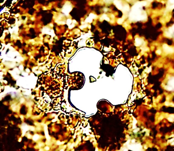 Aspectos da Teca: Contorno circular em vista ventral e hemisférica em vista lateral e abertura trilobada (lobos arredondados). Abertura invaginada e com fino lábio no PS.