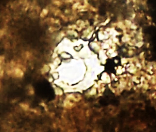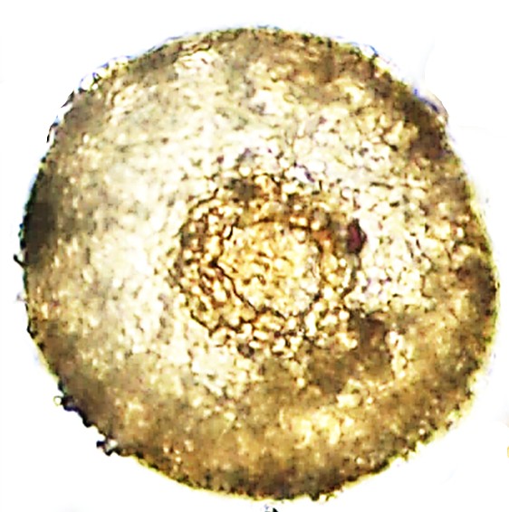 Dimensões e Média (em µm): Diâmetro= 84-101 (92); Altura= 54-66 (58); PS= 17-21(19). As medidas (n= 8) coincidiram com as do autor.