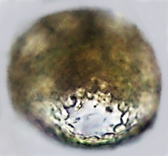 Observação: Tem semelhança com Euglypha sp 13, mas difere pelas escamas distintas e também pela concha comprimida e abertura oval.