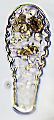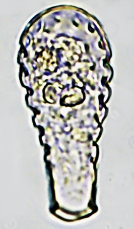 Aspectos da teca: Em forma de garrafa, quitinosa e transparente. Contorno da teca com pequenas ondulações regulares. Abertura (PS) oval, convexa, com lábio reforçado. Veja o vídeo:https://youtu.be/54s9swiPsWA