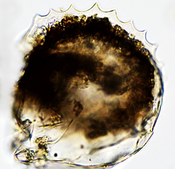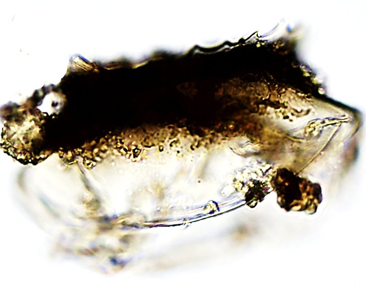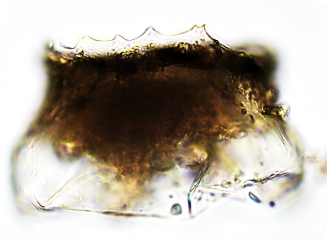 Aspectos da teca: Semelhante às espécies já descritas: M. aculeata, M. flava e M. penardi, mas difere pela “coroa” distinta. Vista de cima é circular com uma “coroa ondulada” e transparente, na vista lateral observa-se a carapaça transparente como um “véu”.