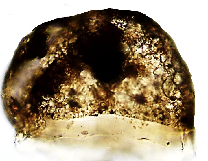 Aspectos da teca: Em forma de “touca” ou semicircular-alta, terminando com uma “borda” diferenciada. Revestimento amarronzado-fosco, contendo pequenas partículas, com uma borda quitinosa amarelada, translúcida.