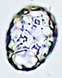 Dimensões e Média (em µm): Comprimento=; 32-41 (37); Largura= 25-31(28); ; Abertura= 8-17 (12). As medidas (N=8) ficaram ligeiramente superiores às do autor, mas a Razão C/L=1,3-1,5 coincidiu