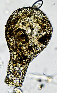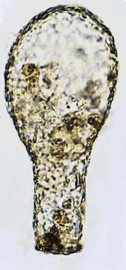 Observação: Os espécimes encontrados são semelhantes à Padaungiella nebeloides, com a distinção das maiores medidas de Comprimento e Largura, sendo a Relação C/L abaixo de 2,0, enquanto para e P. nebeloides: C/L>2,5. Provavelmente um táxon novo.