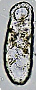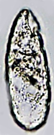 Dimensões (em µm): Comprimento=42-107 (71); Largura=15-38,5 (25); PS=9-21 (13). As medidas (n=18)e as Razões: C/L=2,6-3,0(2,8); L/PS=1,6-2,3(1,9) não coincidiram om as espécies já publicadas.